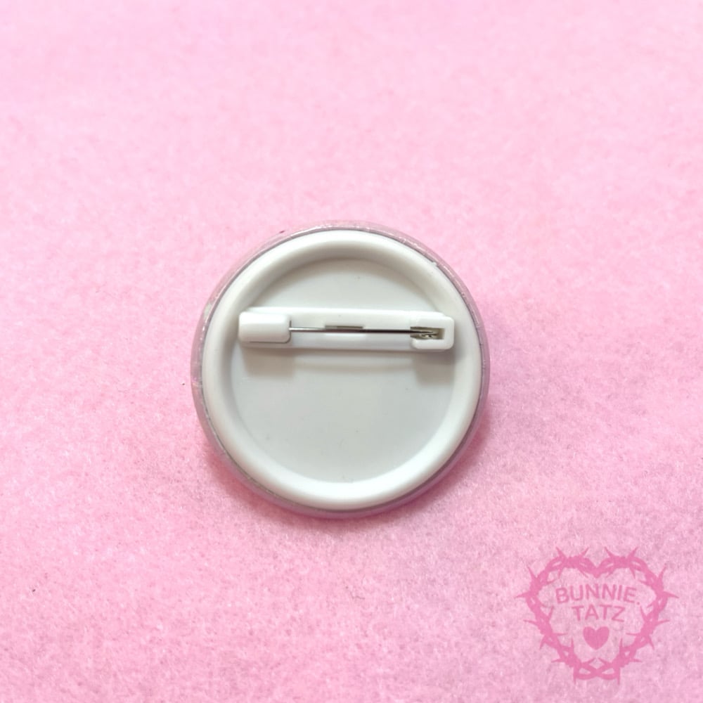 All button badges are fitted with a safety pin backing